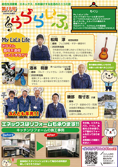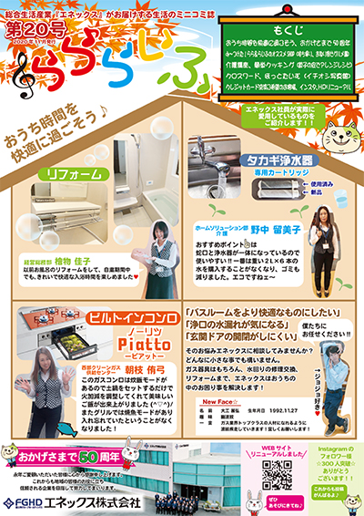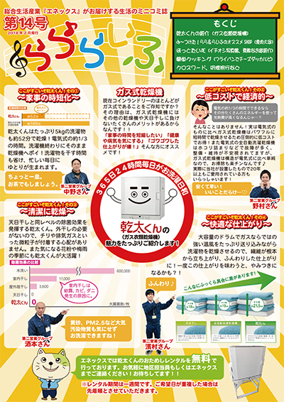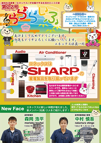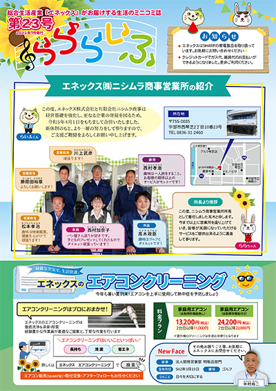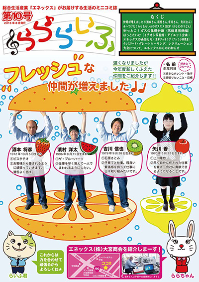 らららいふはエネックス社員有志で作るミニコミ誌です。ホームページ上でもお楽しみ頂けるようPDF版を準備しました。クロスワードパズルに挑戦して、豪華プレゼントGETのチャンス!!